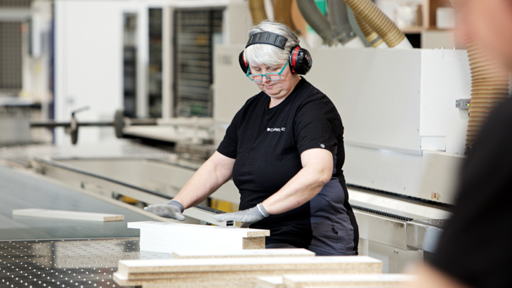 Mit der Übernahme der Produktionsstätte in Schönbach im Jahr 2023 hat CARELINE einen Meilenstein gesetzt. Auf 8.000 Quadratmeter Fläche entstehen hier Möbel, die speziell für den Pflegebereich entwickelt wurden – langlebig, ergonomisch und ästhetisch zugleich. Die halbautomatisierte Fertigung ermöglicht sowohl individuelle Anpassungen als auch effiziente Serienproduktionen.