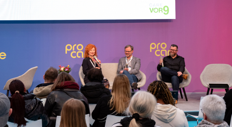 Wie die Diakonie Stiftung Salem mit der Sprachdokumentation Zeit spart, berichteten Carsten Wöhler und Paul Dück Care-Vor9-Redaktionsleiterin Kirsten Gaede im Gespräch