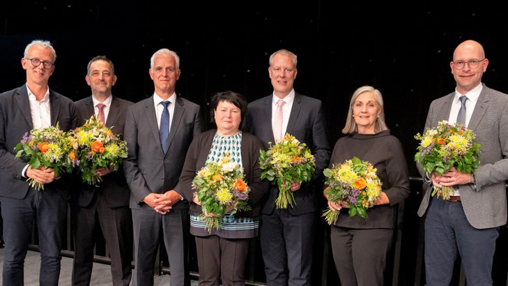 Das alte und neue Präsidium des BPA, von links: Christof Schaefers, Kai Kasri, Bernd Meurer, Margit Benkenstein, Mathias Steinbuck, Susanne Pletowski und Guido Reisener