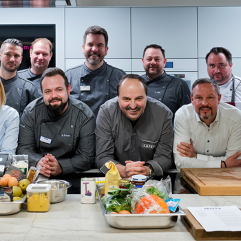 Mit einem täglichen Vitalmenü erweitert die Augustinum-Gastronomie ihr Angebot in den bundesweit 23 Seniorenresidenzen. Neben der Gesundheit stehen Nachhaltigkeit, Genuss und die freie Auswahl am Tisch im Fokus der neuen Linie, die unter anderem mit Fernsehkoch Johann Lafer (Foto vorne Mitte) entwickelt wurde.