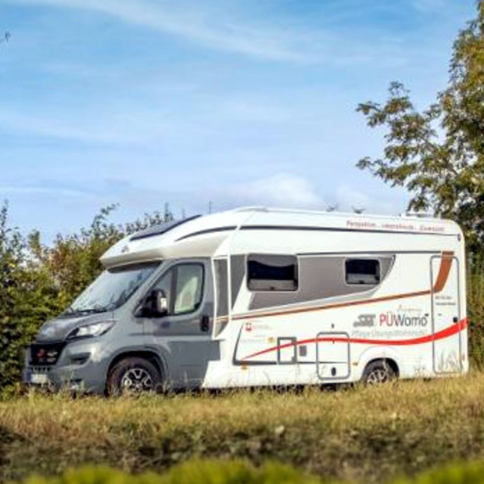 In Bayern wurde ein einzigartiges Modellprojekt gestartet: Pflegebedürftige und ihre Angehörigen können im speziell ausgestatteten Pflegeübungs-Wohnmobil gemeinsam Urlaub machen. Das Wohnmobil steht im bayerischen Bad Königshofen. Der Caritasverband Rhön-Grabfeld bietet professionelle Unterstützung vor Ort und nimmt auch die Buchungen entgegen. Das Wohnmobil kann von Pflegebedürftigen aus dem ganzen Bundesgebiet gemietet werden.