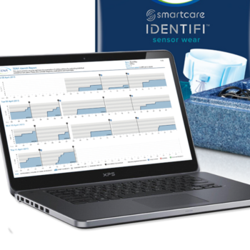Tena Smart Care Identify ist eine digitale Lösung, die aus zwei Komponenten besteht: dem sogenannten Logger, der die Feuchtigkeit protokolliert, und speziellen Inkontinenzvorlagen mit integrierten Sensoren. Die Vorlagen zeichnen für 72 Stunden die Toilettenroutine eines Bewohners auf. Der Wechsel der Vorlagen erfolgt nach der normalen Pflegeroutine. Dabei wird der Logger jedes Mal entfernt und an einer neuen Vorlage angebracht.