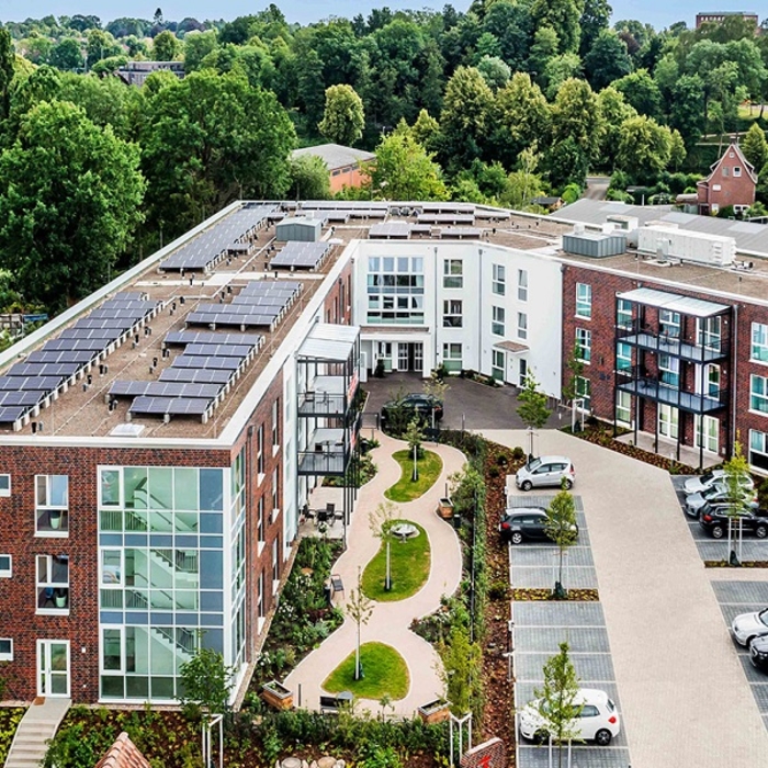 Wie hier auf dem Dach der Seniorenresidenz Stade sind weitere Häuser der K&S Gruppe mit Photovoltaikanlagen ausgestattet