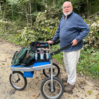 Gerhard Wissel mit seinem elektrischen Alpin-Rollator, mit dem der 92-Jährige in den Bergen wandern geht
