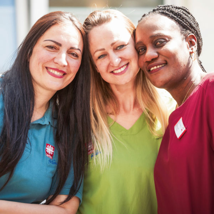 Die Caritas für die Stadt Köln hat sich gegen die Sichtbarmachung von Funktionen über Farben entschieden. "Wir arbeiten gemeinsam im Team, sind unterschiedliche Menschen mit unterschiedlichen Professionen – und wir sind alle gleichermaßen für unsere Bewohnenden da. Das wollen wir auch mit unserem bunten Farbkonzept zum Ausdruck bringen. Alle dürfen so sein, wie sie sind. Eine funktionelle Pflege mit klarer Trennung sehen wir eher im Bereich der Krankenhäuser", meint Toups.