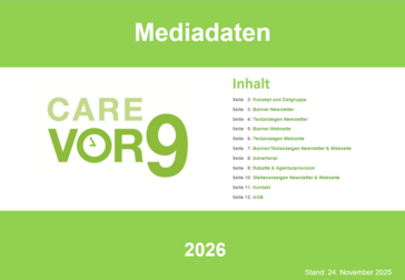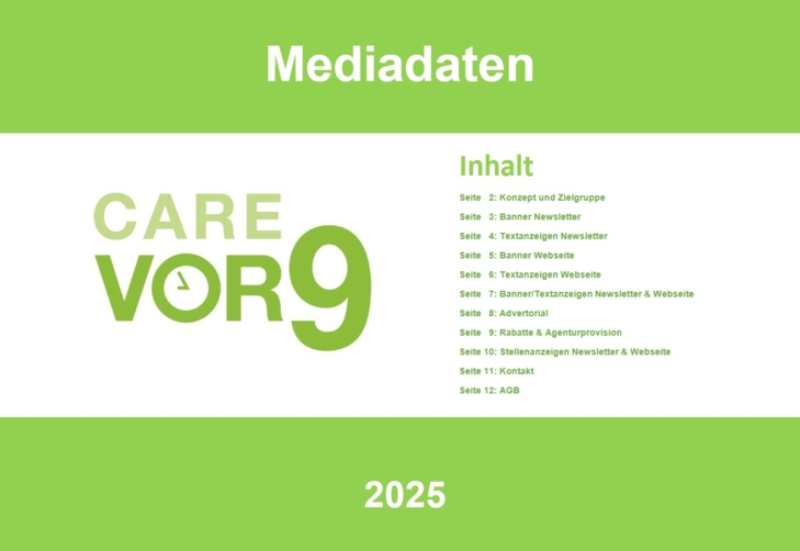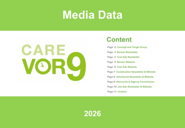 Hier die Mediadaten von Care vor9 als PDF für 2026 auf Deutsch und Englisch